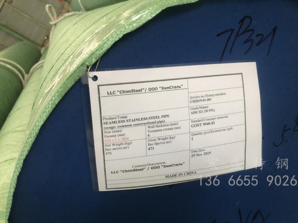 公司特色產品630mm×5mm不銹鋼無縫鋼管檢驗合格出口俄羅斯